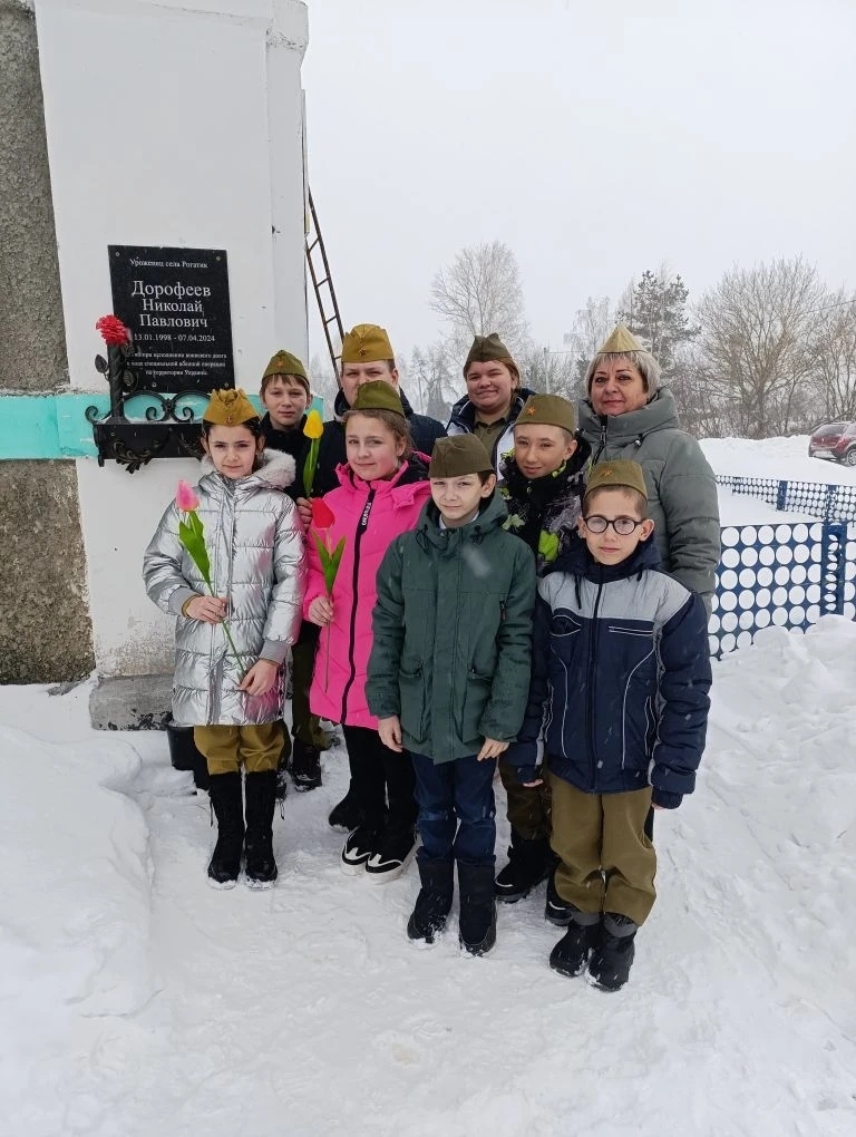 В нашей школе прошла Всероссийская акция #НашимГероям, посвящённая празднику __Дня Защитника Отечества__. Мы вместе почтили светлую память нашего выпускника — Дорофеева Николая, героя Специальной Военной Операции. Ученики бережно возложили цветы к мемориальной доске Николая, символизируя уважение и благодарность за его мужество и отвагу. Завершая мероприятие, мы единогласно встали в минуту молчания, отдавая дань уважения нашему дорогому герою и всем, кто защищает наше мирное небо над головой.